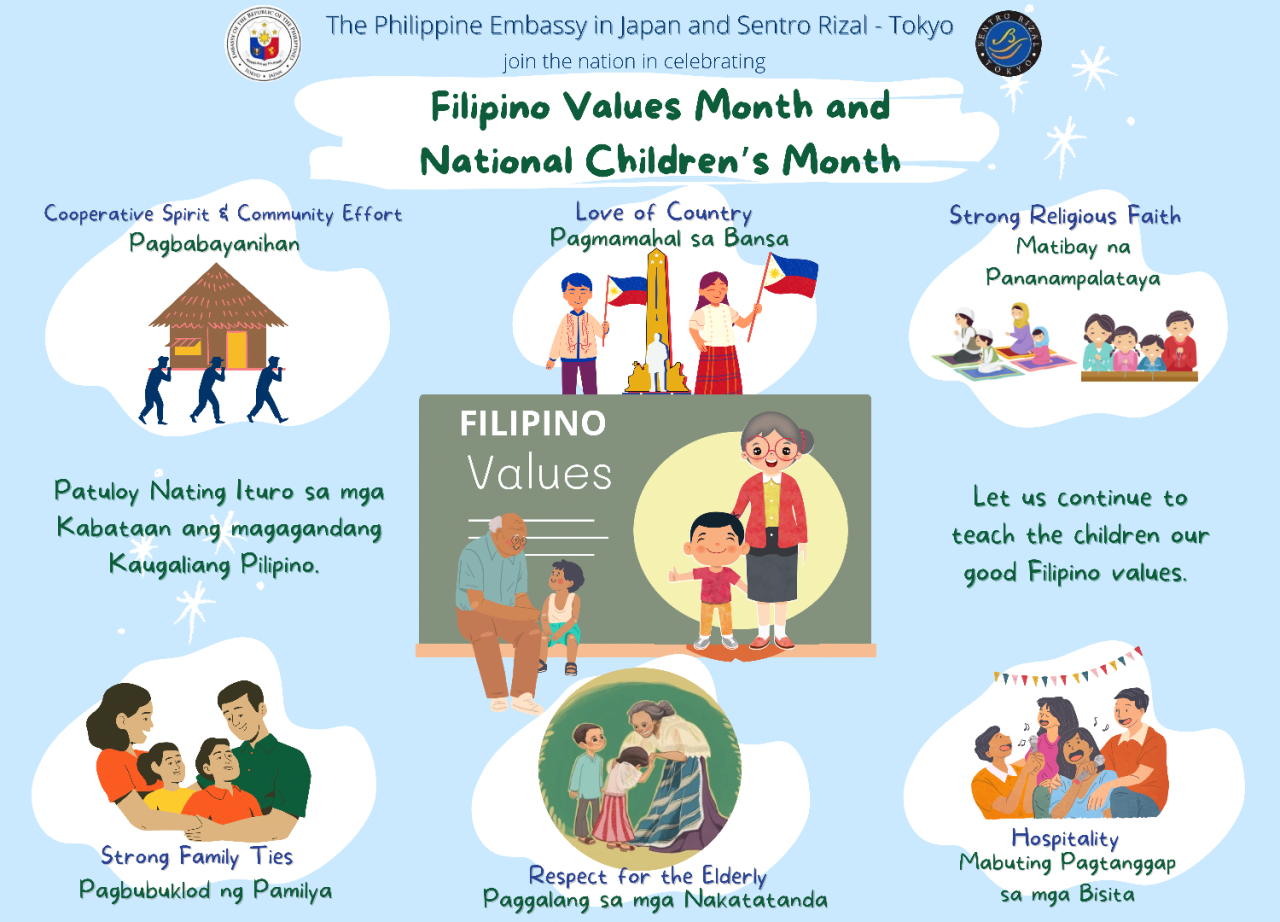 Some Positive Traits of Filipinos: 1) Say Opo/ Po To elders as respect in talking. 2) Filipinos Mano on the elders when greeting them, which is also a part of respect. 3) Most Filipino schools dont bully, not like in other foreign countries. 4) We believe in only one God, which is God (Most of us are Catholics) 5) We always pray, before going to eat, going to bed...etc. 6) We love to laugh. 7) Some are helpful. 8) There's no such thing as nerds here in us, and we don’t tease smart people. 9) We are friendly. 10) In the old days, if a boy wants a girl, the boy should speak to the parents first, and do everything just to accept him and to marry the girl.(that was in the OLD days). 11) The father is not the only bread winner of the family, also their children.- Most of us don’t care if your ugly or beautiful, it all depends on the personality. ^