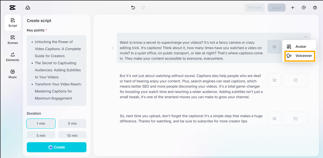 How to Auto-Write Caption and Voice-Over Lines in CapCut PC