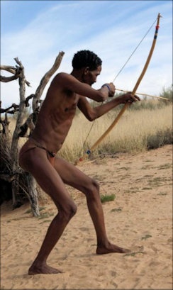 “Indeed, in the Kalahari, the San often like to perform a trance dance around or near the carcass of a freshly killed eland in order to harness supernatural energy (known as n/om) from the animal. When they have harnessed this energy, they enter an altered state of consciousness in which they stumble about, sweat profusely, and the hair on their bodies stands on end. So closely are the experiences of trance and the death of eland in their physical manifestation that the San talk about trance as "the death that kills us all." They speak of their experience metaphorically; for them, there is no difference between death and trance. \^/