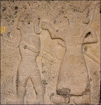 9th century BC depiction of men with swords from the Hittite city of Sam'al