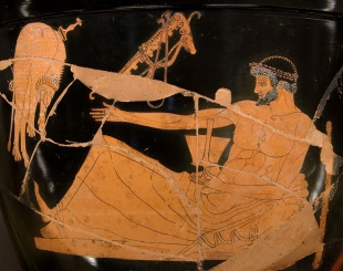 As a rule, music played an important part at the symposium. Francisco Javier Murcia wrote in National Geographic History:“The most common after-dinner activity was the singing of skolia, sung to the accompaniment of a lyre. These short songs typically celebrated friendship or the pleasures of wine, recounting historic events or exalting the social values of the aristocracy from whose ranks most guests were drawn. The word skolion means “sideways” in ancient Greek, a reference to how the guests took turns to sing, afterward passing a myrtle branch to the man reclining next to him who was to sing [Source: Francisco Javier Murcia, National Geographic History, January-February 2017]